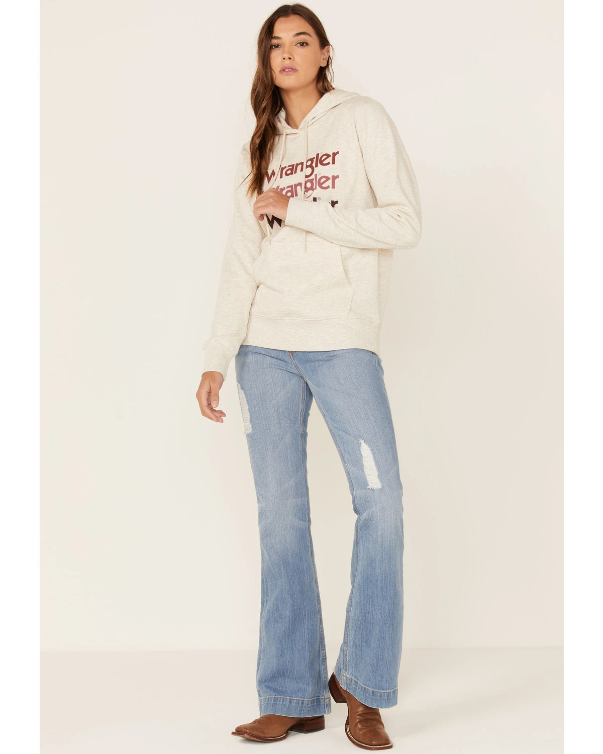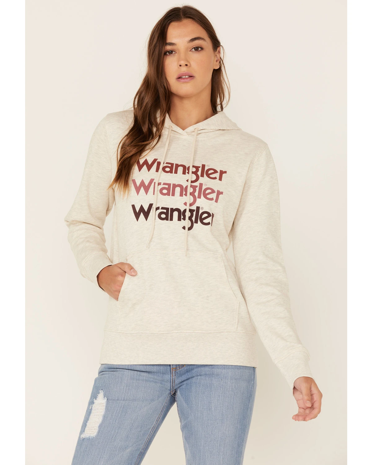 - “Wrangler” multi-colored stacked logo graphic on front